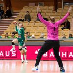 Biträdande tränaren Malin Larsson, som en gång i tiden tillhört Skuru, men inte spelat handboll på 4-5 år, fanns nu med på plan och blev enmålsskytt.