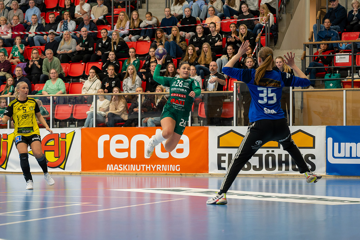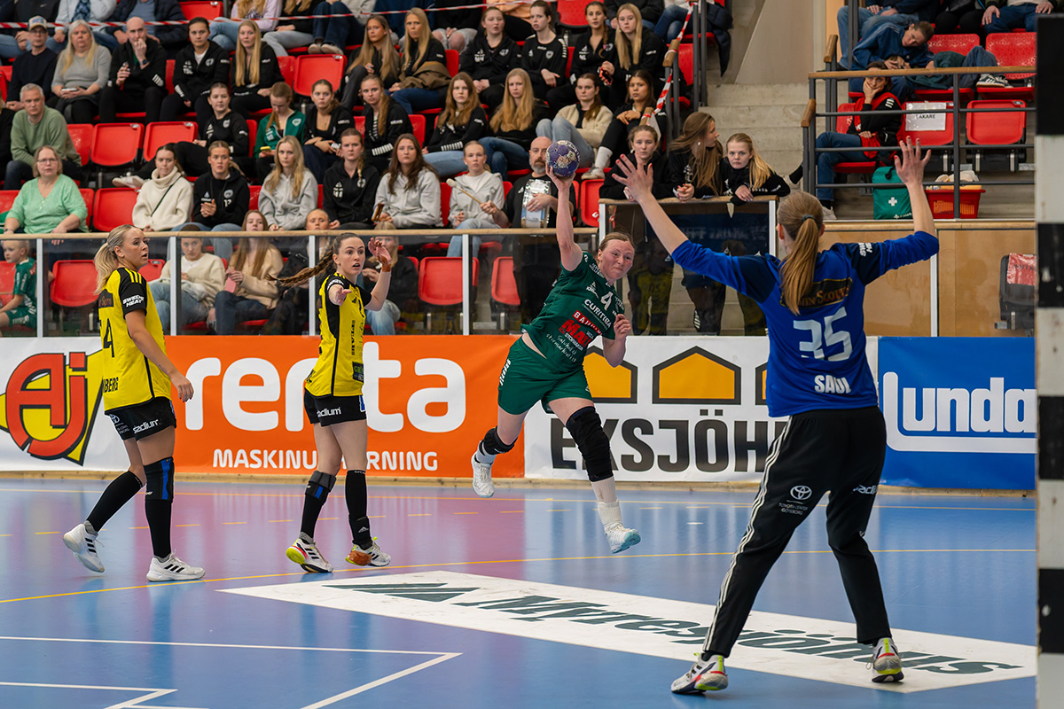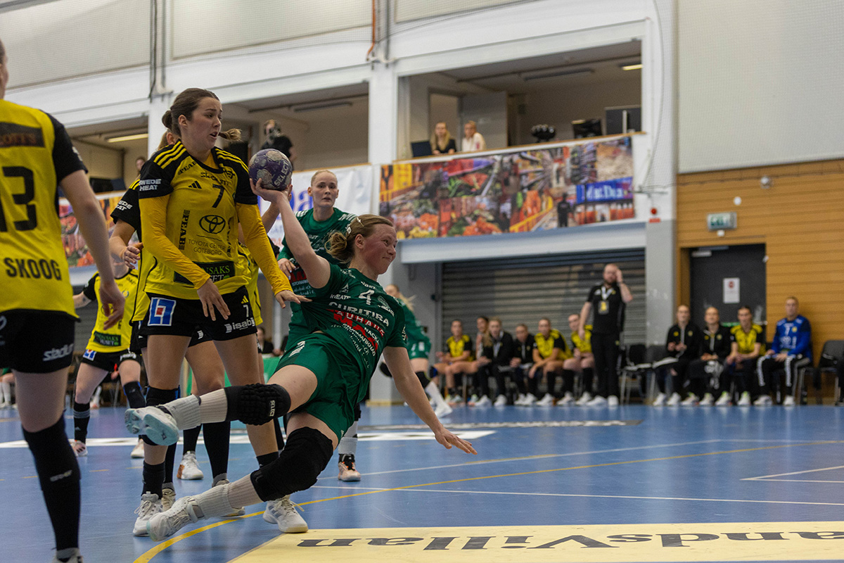 – Vi kämpar men det räcker inte, säger Ellen. I många stunder står vi bra bakåt men Sävehof får till slut in bollen efter att ha tryckt på länge och på slutet rinner det iväg lite extra.