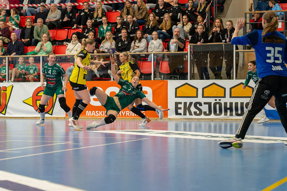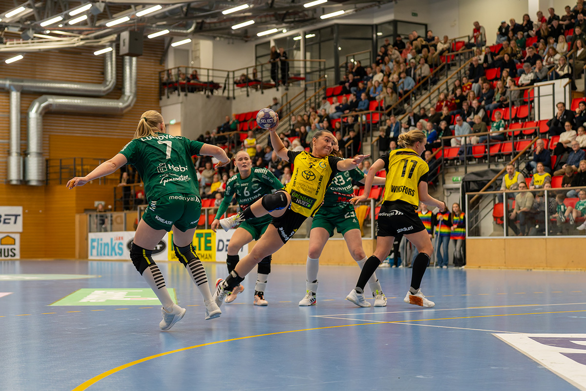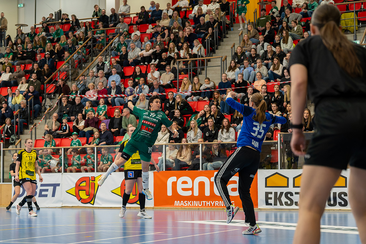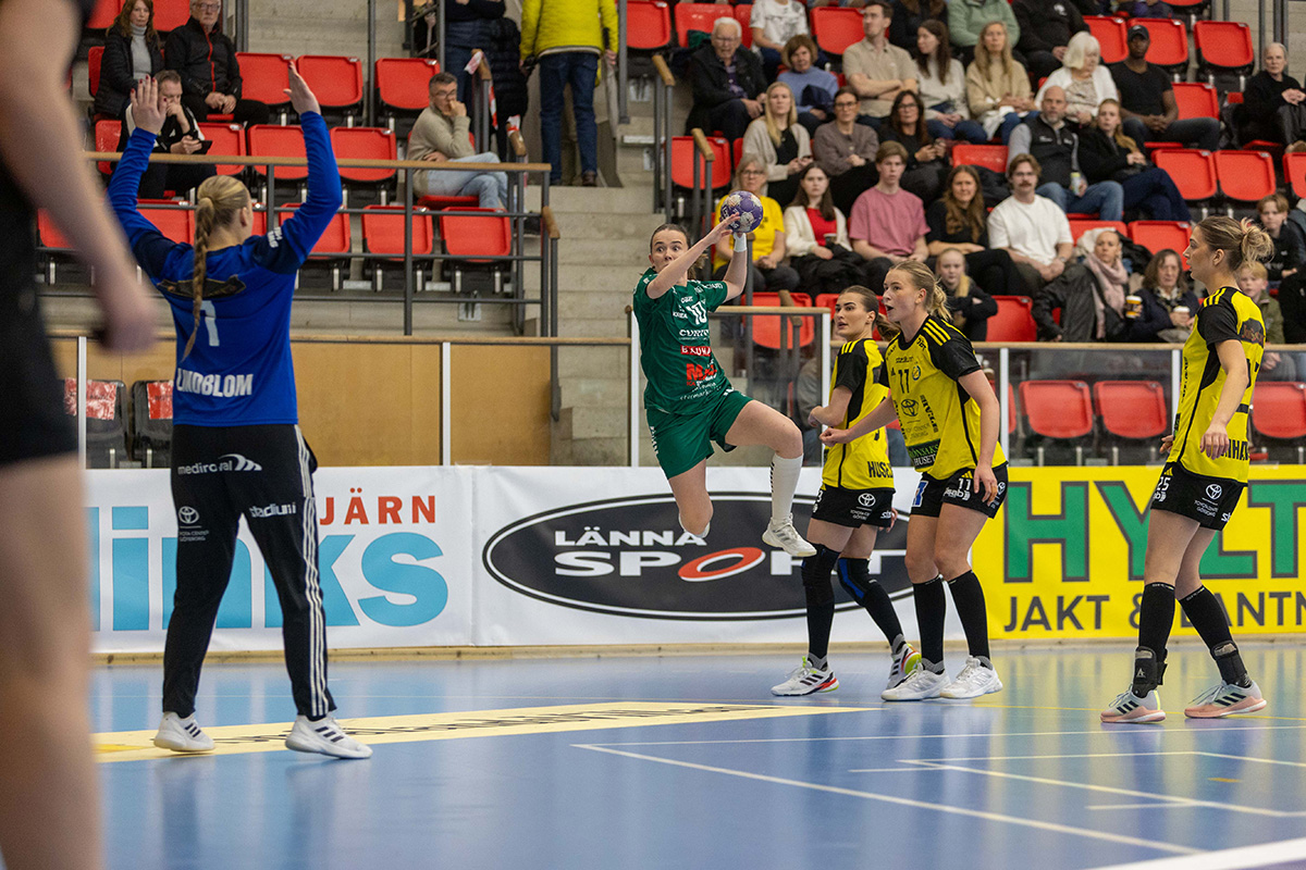 – Vi kämpar men det räcker inte, säger Ellen. I många stunder står vi bra bakåt men Sävehof får till slut in bollen efter att ha tryckt på länge och på slutet rinner det iväg lite extra.